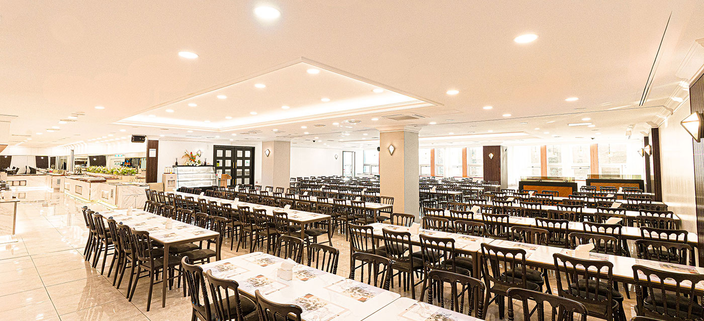 연회장 Banquet Hall 대규모의 호텔식 연회장과 초일류 조리장의 정갈하고 맛있는 음식 예약문의 Special Feature 식사의 맛을 돋우는 조명과 음향, 품격있는 테이블세팅과 가족행사부터 대규모 연회도 가능한 대연회장이 완비되어 있습니다. 호텔출신 조리장의 정갈하고 맛깔스런 음식으로 하객 여러분들에게 최고의 맛을 드립니다. 결혼식피로연은 물론 돌백일잔치, 회갑고희연, 세미나 및 기업행사, 단체행사등 각종 행사를 여유롭게 치루실 수 있습니다. Floor1층/2층/B1 Scale3개층 동시 1,000석